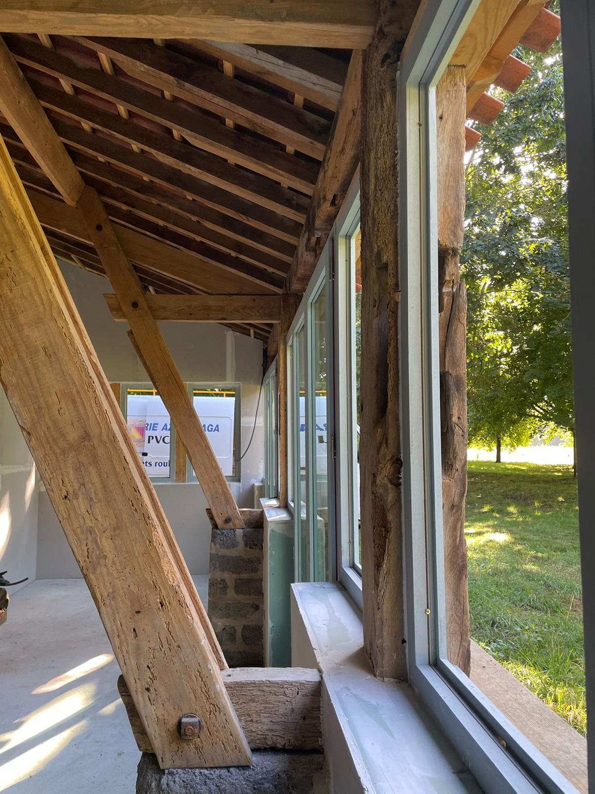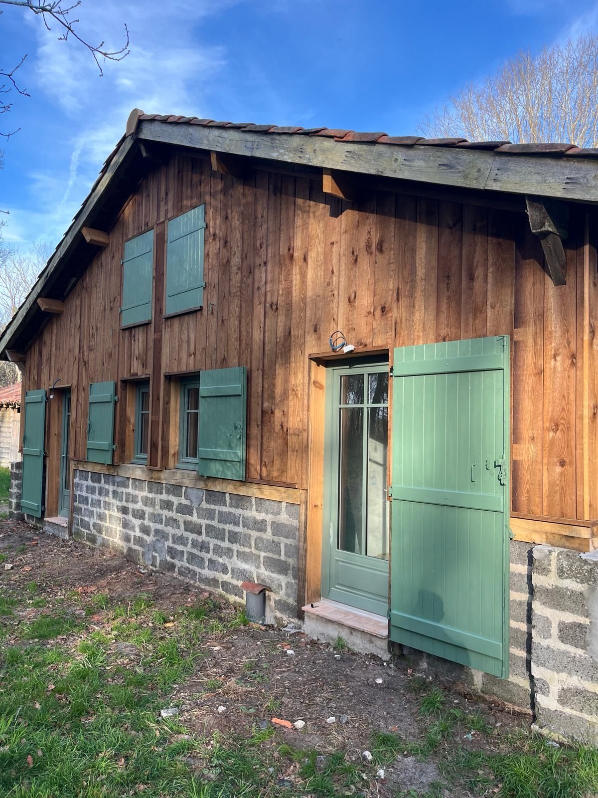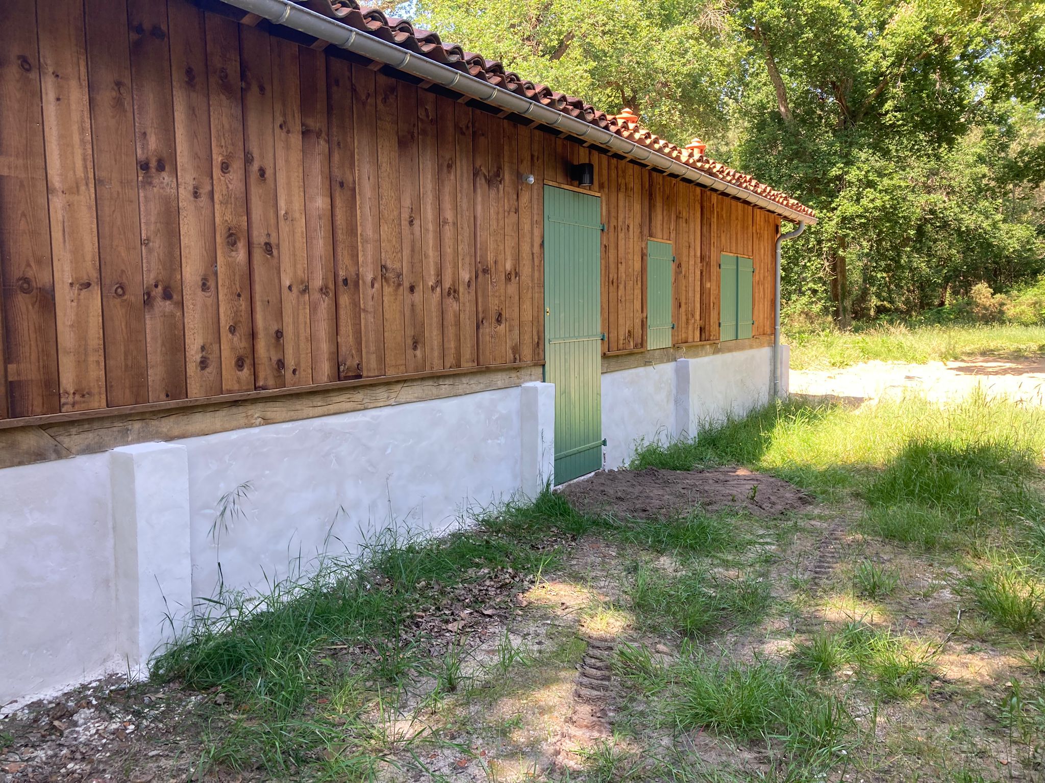 L'ancienne bergerie qui vit dans ce biotope landais ne demandait qu'à être habité. Sur son socle maçonné, la charpente bois est mise en avant par un travail fabuleux des artisans. Et c'est à l'intérieur que le plus gros du travail est effectué. Au sol, on enlève le foin et on coule une vraie dalle béton. Au plafond et sur les murs, on isole et on crée de nouvelles ouvertures. Une fois les menuiseries posées, le panorama sur la forêt environnante prend tout son sens.